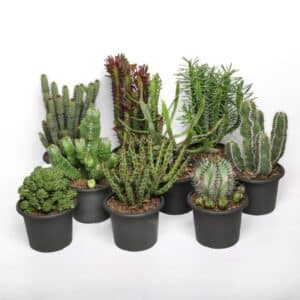 Ce mix réunit plusieurs espèces et formes d’euphorbes : colonnes élégantes, coussins côtelés, touffes ramifiées ou silhouettes plus exotiques. Chaque lot est différent selon l’arrivage : la photo montre le style, pas la plante exacte. Tu reçois une plante unique choisie pour son allure décorative.